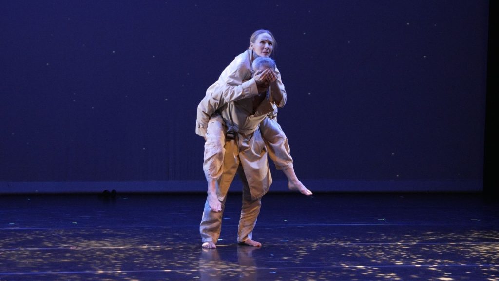 Based on the Japanese play Sarachi (Vacant Lot), by contemporary Japanese theatre artist Shogo Ota, Vacant Lot is a hybrid dance/theatre piece at the Firehall for only two more performances. It’s a gentle, mesmeric meditation on aging, created by Hiromoto Ida and performed by Ida and Lindsay Clague. Beautifully staged with exquisite lighting by Sharon Huizinga, it has a dreamlike quality that’s brightened with humour. Text appears projected behind the performers who appear as an older couple, married 67 years, so comfortable in their long relationship that they forgive each other’s idiosyncrasies: she rolls her eyes at his frequent urinating, he wishes she wouldn’t complicate things so much. He Googles “How to build up sexual desire in senior citizens” on his phone while she tries to make a new home with what’s left after the roof of their house blows off, leaving them to discover they can now see the stars. Metaphoric. Very Zen. Very Beckett.